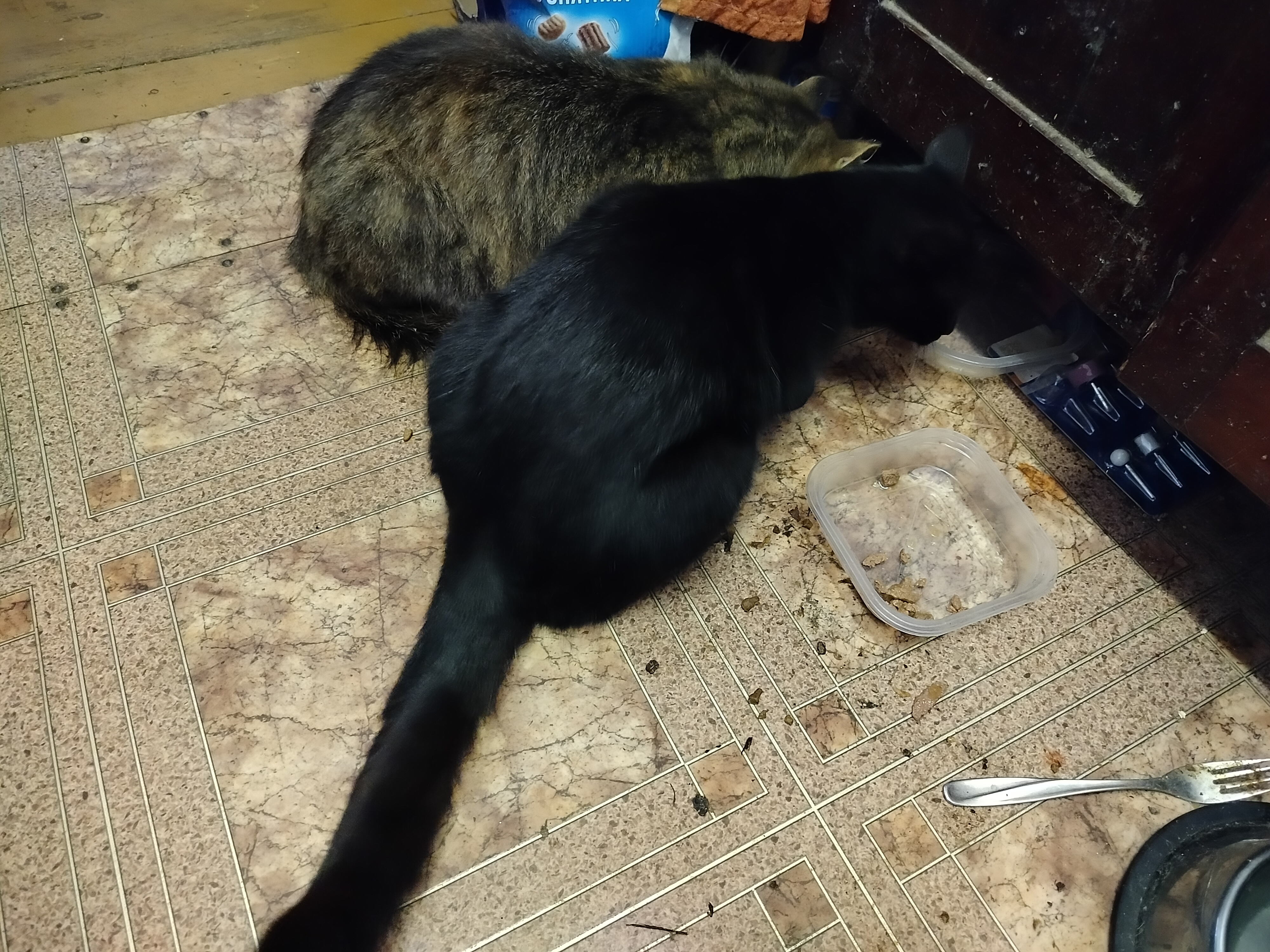 Кошек уже накормил . Нагладил и теперь они вполне довольны .