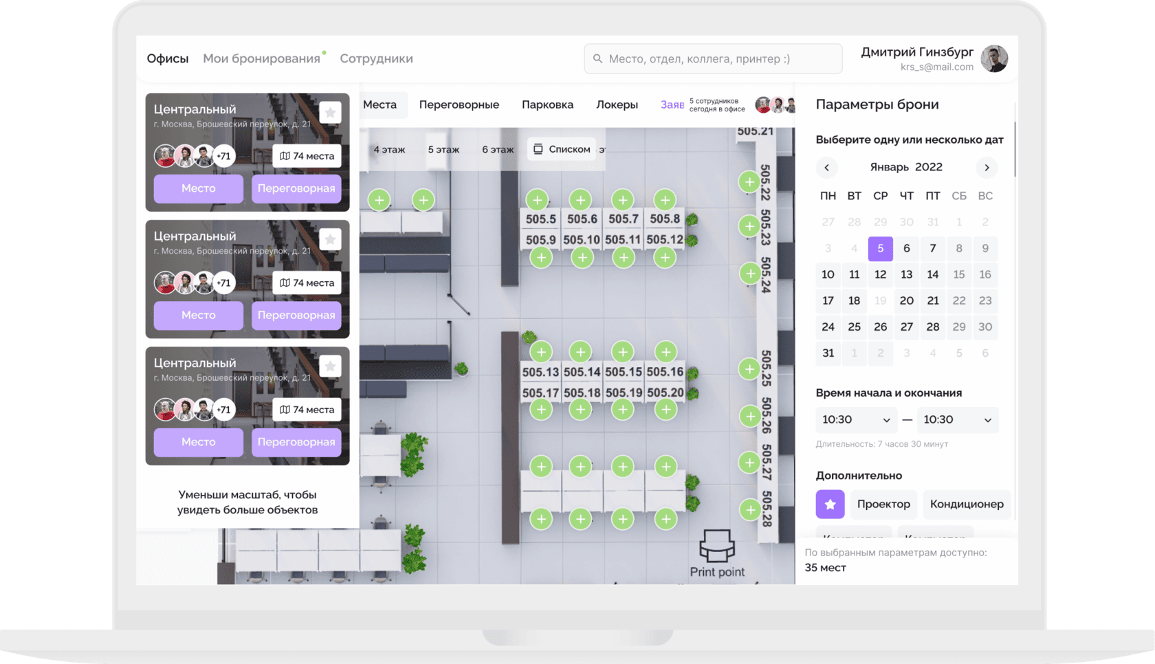 Комплексное бронирование офисных ресурсов