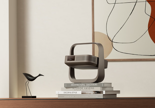 Проектор выполнен в цвете Коричневый моккачино, весит 1,5 кг и имеет толщину 7,8 см. Шарнирная подставка позволяет наклонять устройство на 150°.