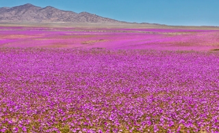 Необычные условия в пустыне АтакамаВ этом году пустыня Атакама в Чили, известная как одно из самых сухих мест на Земле, удивила всех. После редких дождей ее привычно бесплодные просторы покрылись ярким ковром фиолетовых цветов.