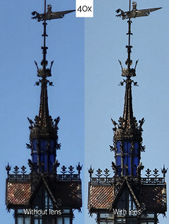 Фото X (Ben Geskin) Линза позволяет снимать с 40-кратным приближением в целом без особых потерь детализации, превращая смартфон в некое подобие бинокля. Собственно, у самых бюджетных телескопов уровень приближения примерно такой же.