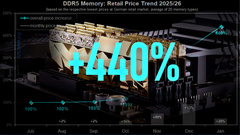 Изображение: Самый сильный ценовой удар пришелся на память DDR5: в среднем модули подорожали на 340% по сравнению с июлем 2025 года. И хотя сейчас темпы роста немного замедлились (+27,6% с декабря 2025 года по январь 2026 года против +93% с ноября по декабрь 2025 года), цены продолжают ползти вверх.