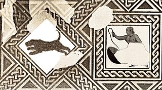 Фрагмент мозаики с изображением охотника с шестом, леопарда и женщины. Источник изображения: tandfonline.com