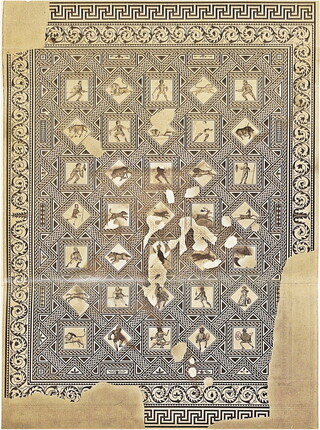 Полное изображение утраченной мозаики III века. Найдена в Реймсе в 1860 году, уничтожена в 1917 году во время Первой мировой войны. Рисунок из книги Лорике 1862 года. Источник изображения: tandfonline.com