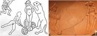 1. Женщина, отданная на растерзание. Terra sigillata, найденная в Галлии, примерно II век. 2. Женщина, брошенная на растерзание медведю, блюдо, найденное в Риме, IV век. Источник изображения: tandfonline.com